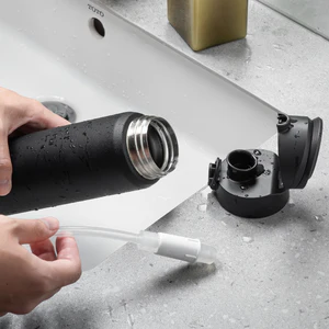 Dank der innovativen Halterung kannst du deine Flasche überall bequem mitnehmen – ob unterwegs, im Büro oder beim Sport.